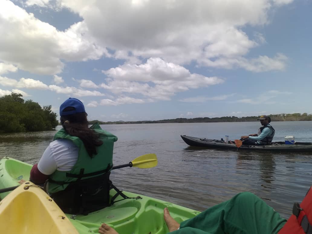 El recorrido se hizo a pie y en vehículo automotor por las zonas terrestres, y dentro de la laguna, en kayaks, con la colaboración de la empresa Kayaks Margarita.