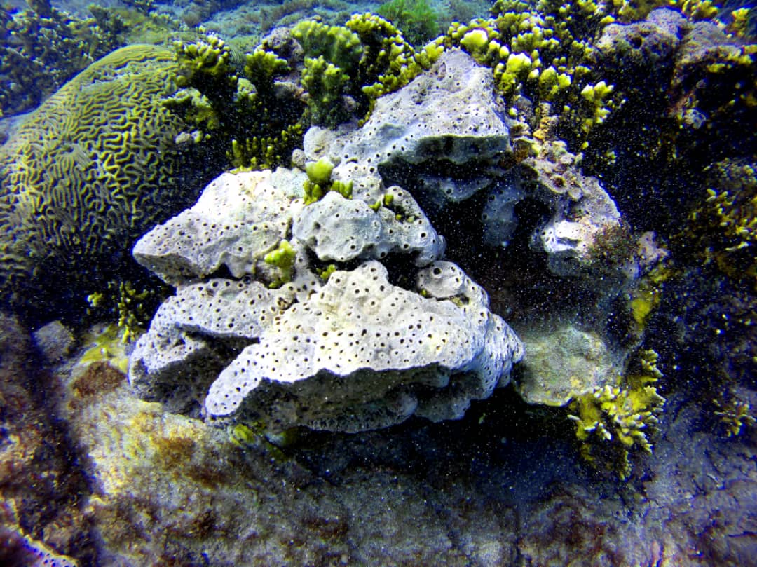 Otro miembro bastante común en los parches de coral, son las colonias que forma la especie Palythoa caribaeorum, el cual está enmarcado entre los corales blandos․ Se trata de pólipos individuales con la misma estructura morfológica que las anémonas marinas․ Sus formas son cortas y redondeadas en sus extremos, se conectan a través de un tejido común en la base, a modo de alfombra, para desarrollar la colonia․ Prefieren zonas de corrientes fuertes, y bien iluminadas, anclados en rocas o corales muertos.