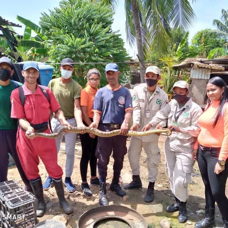 El personal del Cuerpo Civil de Guardaparques en conjunto con funcionarios de Protección Civil se dirigieron a la comunidad de Manzanares ubicada en Güiria, específicamente en Playa el Pescador, municipio Valdez con el objetivo de rescatar una serpiente de especie anaconda Lagunera, mejor conocida como Boa de Agua, (Eunectes murinus) tras un llamado que realizó el ciudadano Pedro Muñoz.