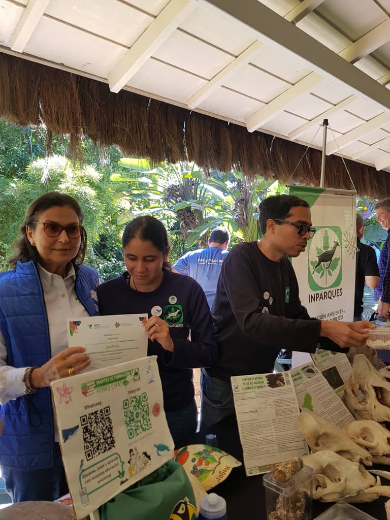 La jornada de intercambio de experiencias se realizó en la EcoFeria del Encuentro, donde Inparques tuvo una importante receptividad del público, quien atraídos por el stand Vitrina Ecológica Presencial, disfrutó de la exposición de diversas piezas relacionadas con huellas orgánicas: pieles, cráneos, animales disecados, además de breves conversatorios orientados a niñas, niños, jóvenes y adultos, quienes pidieron conocer la filosofía de la gestión institucional y la importancia global de los parques nacionales, monumentos naturales y parques de recreación.