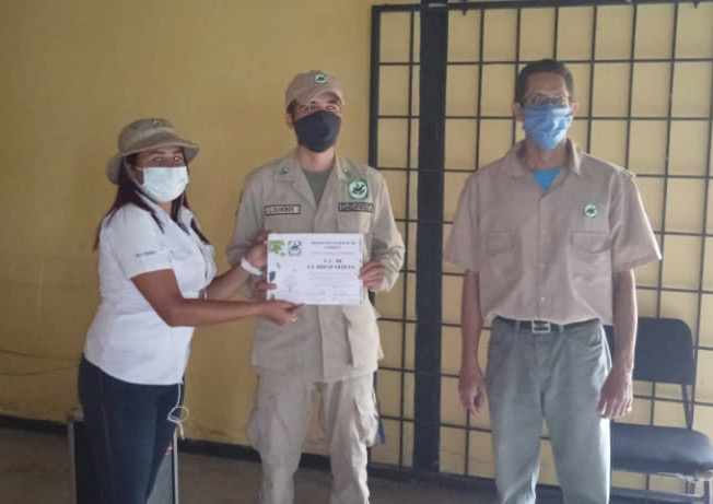 Sumado a esta actividad, la División Estadal de Parques de Recreación conjuntamente con la Dirección Regional del Instituto Nacional de Parques, hacieron entrega de un pequeño reconocimiento al personal que se ha mantenido en pie de lucha en tiempos de pandemia.