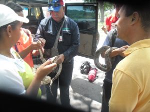 Antes de proceder a soltar las ocho serpientes, los jóvenes del Plan Chamba Juvenil, que serán preparados como recreadores del parque, ofrecieron una charla preventiva sobre las características de las especies tragavenados, así como el proceso de rescate y liberación.