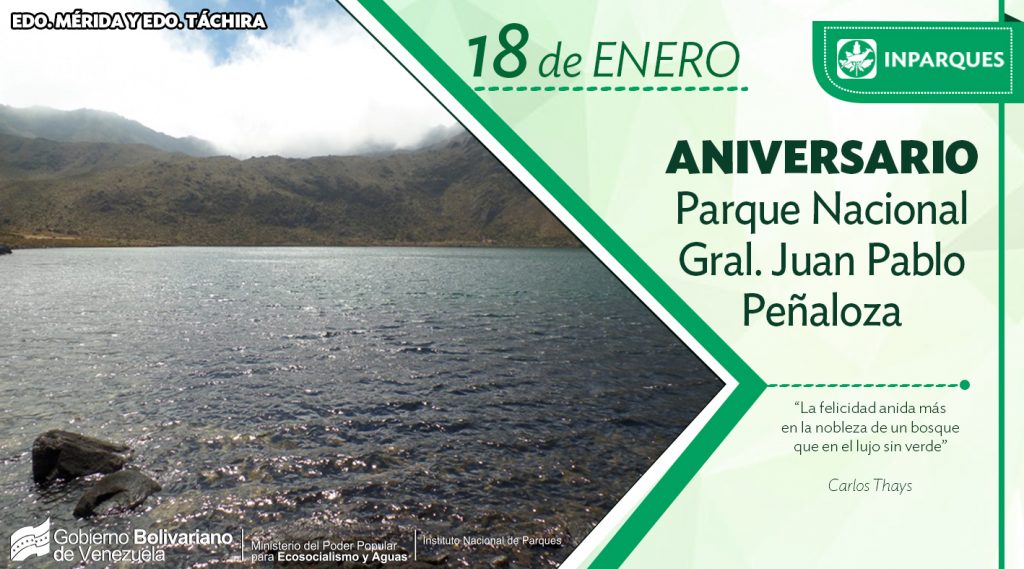 Prensa / Inparques 18/01/2018.- El 18 de enero de 1989 fue fundado el Parque Nacional General Pablo Peñaloza ubicado en los estados andinos de Mérida y Táchira y el cual arriba a su aniversario número 29 de ser declarado espacio protegido.