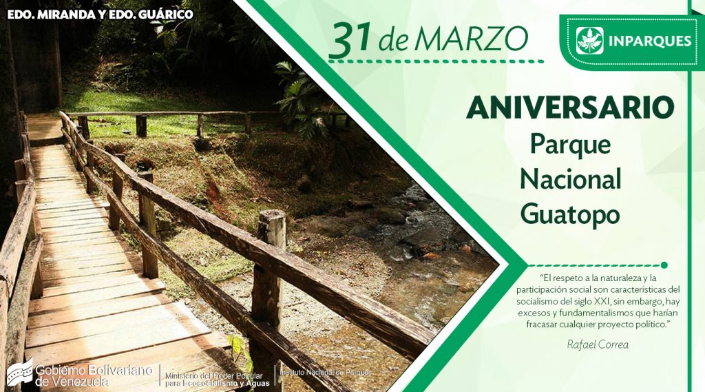 Prensa Ecosocialismo y Aguas (Minea) / Inparques / 31/03/2018.- Ubicado entre los estados Miranda y Guárico, el Parque Nacional Guatopo arriba a los 60 años de haber sido declarado como el tercer espacio protegido de Venezuela un 31 de marzo de 1958, fecha desde la cual es reconocido por ser garante del agua para la capital del país y para la zona metropolitana debido a los numerosos ríos que nacen en su seno.