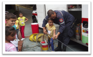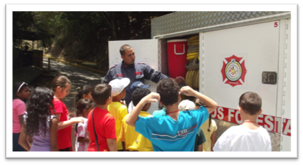 Además, por medio de otro programa de Inparques denominado El bombero va a la escuela, los servidores públicos visitan una entidad educativa para promover la conformación de las brigadas comunitarias (en las cuales participan los adultos), las infantiles y las juveniles, muchas de las cuales nacen luego de haber captado la atención de algún infante que haya participado en Bomberito por un día.