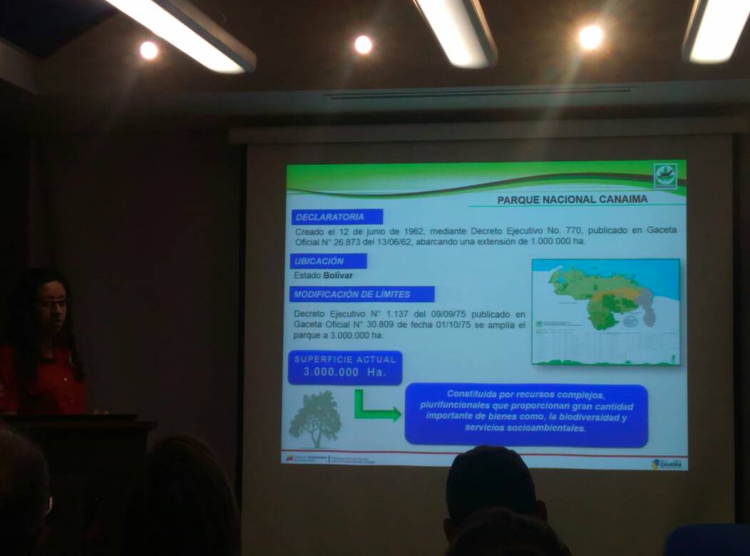 En esta oportunidad, Jacklin Acosta, directora Regional de Inparques en el estado Bolívar, explicó la situación actual y los retos del parque nacional. Además, resumió los planes que Inparques posee para la conservación de este patrimonio natural, en trabajo permanente y conjunto con los pueblos indígenas que allí habitan.