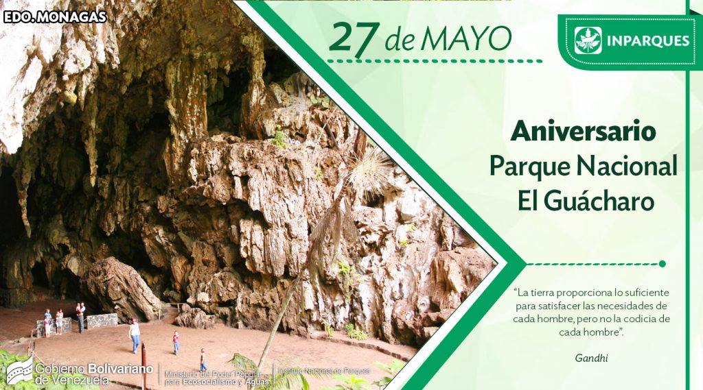 El Parque Nacional El Guácharo, ubicado en el municipio Caripe del estado Monagas, fue establecido el 27 de mayo de 1975, es un área de impresionante paisaje de montañas, bosques, cavernas, ríos, quebradas y caídas de agua, que además cuenta con extensa variedad de flora y diferentes especies de fauna.