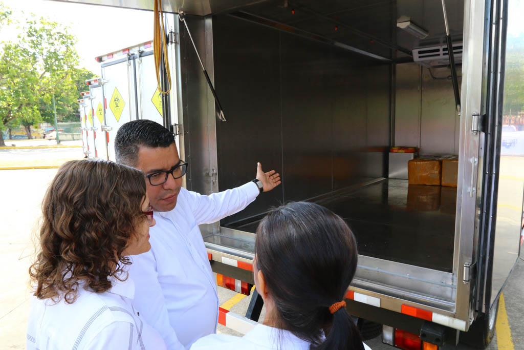 El ministro del Poder Popular para el Ecosocialismo, Heyck Rangel, entregó a la presidenta del Instituto Venezolanos de los Seguros Sociales (IVSS), Magaly Gutiérrez, cinco vehículos diseñados para el traslado de desechos patológicos y hospitalarios