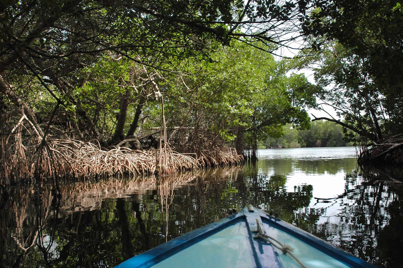 La laguna tiene un lecho de más de 100 Km2, en donde los manglares forman un número de islas y canales.